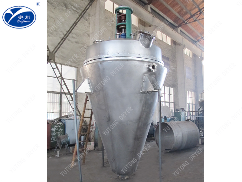 The main body of the equipment is upright and stationary, and the heated spiral belt carries out circular stirring and lifting movement. After the material enters the dry chamber, the jacket and the stirred spiral belt are used to contact and heat the material. The material is stirred by the spiral belt in an orderly manner, which turns over, lifts and falls, so that the material constantly contacts the wall of the heating chamber and carries out forced heat exchange. To achieve the purpose of rapid drying.