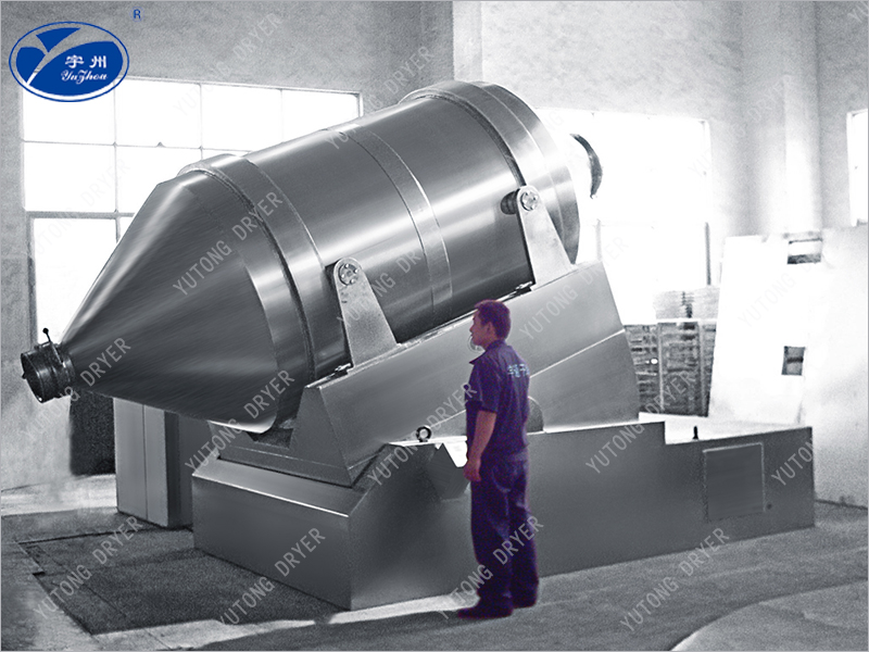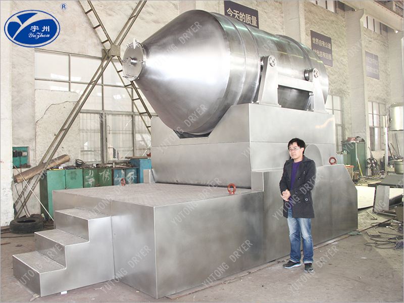 The rotary drum of the EYH two-dimensional mixer can perform two movements simultaneously, one is the rotation of the rotary drum, and the other is the swing of the rotary drum with the swing frame. The mixed material rotates, flips, and mixes inside the drum, while also undergoing left and right back and forth mixing movements with the swinging of the drum. Under the combined action of these two movements, the material is fully mixed in a short period of time. The EYH two-dimensional mixer is suitable for mixing all powder and granular materials.