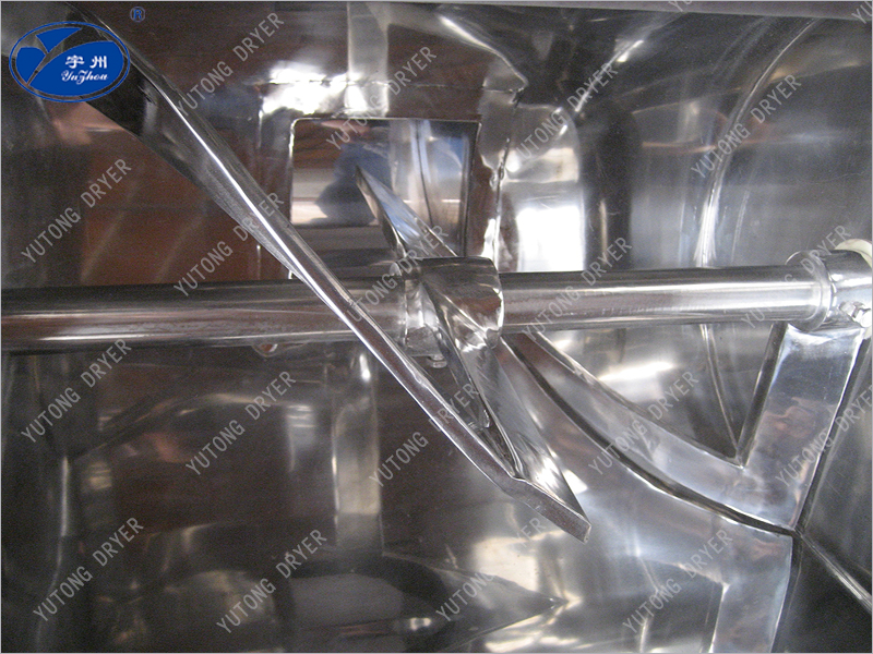 The contact area between the machine and the material is made of stainless steel, with a small gap between the blade and the barrel, and no dead corners in the mixing process. The mixing shaft is equipped with sealing devices at both ends to prevent the material from leaking out.