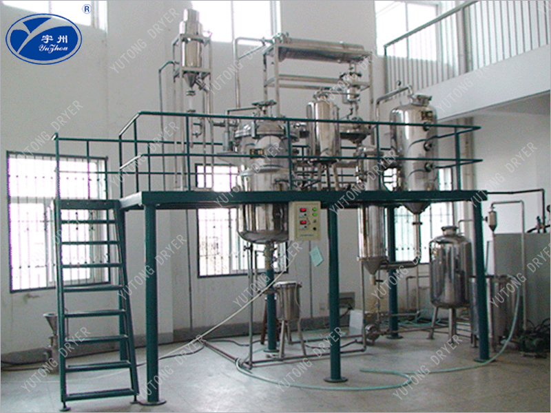 This unit is a new product developed by our factory based on the reference of similar products at home and abroad. It integrates multi energy extraction and vacuum concentration, simplifying the operating procedures. At the same time, due to the fact that the entire extraction and concentration are carried out in a closed flow path, phenomena such as "running", "emitting", and "leaking" are avoided. The drug residue is discharged by electric lifting, which improves the working environment and reduces energy consumption. All parts of this unit that come into contact with materials are made of stainless steel, which meets the requirements of pharmaceutical hygiene. This unit is suitable for the extraction and concentration of Chinese herbal liquids, fruit juices, and other substances in hospitals, pharmaceutical factories, and the food industry, as well as the recovery of organic solvents.