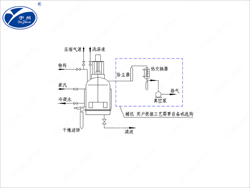 (3) Blow drying: After full washing, the compressed air is passed into the filter cake to blow dry. For materials that need to be dried, steam or hot air (nitrogen) is passed in to dry the material under the action of vacuum.