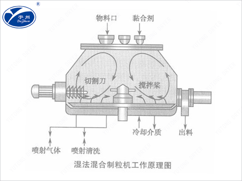 The powder material and adhesive are thoroughly mixed into a wet soft material in a cylindrical container through a bottom mixing slurry, and then cut into uniform wet particles by a high-speed grinding blade placed on the side.
