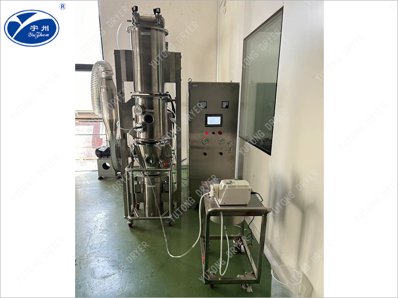 FL series boiling pelletizing machine is also known as "one-step pelletizing machine", the use of boiling pelletizing method is the result of the comprehensive application of spray technology and fluidization technology, the use of high-speed hot air flow to fluidize powder, and then the bonding effect of atomized adhesive, so that the solid powder bridge each other, agglomeration, and gradually form particles. This machine is based on the traditional double column air cap type granulator, which is a newly developed single column airbag sealed granulator, suitable for the granulator drying operation in pharmaceutical, chemical, food and other industries.