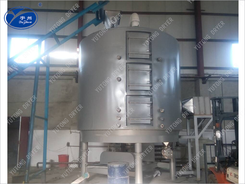 4、安裝方便、占地面積小。干燥器整體出廠,整體運(yùn)輸,只需吊裝就位,安裝定位非常容易。由于干燥盤層立式布置,立式安裝,既使干燥面積很大,占地面積也很小。