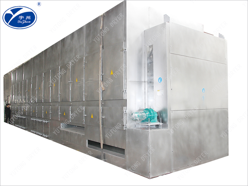 2、Материалы этой серии ленточных сушилок распределены по сетке из нержавеющей стали, а горячий ветер проходит снизу вверх через материал на ленте. Теплообмен равномерный и адекватный, высокая производительность, хорошее качество продукции. Он оснащен холодным мобильным слоем и вращающимся выравнивающим устройством с низкой температурой выбросов, что способствует своевременной упаковке.